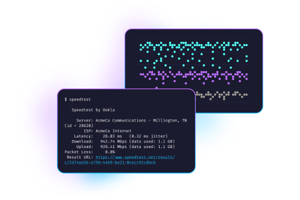 Speedtest CLIを使えば、Speedtestで使われている信頼できるテクノロジーとグローバルサーバーネットワークをコマンドラインで使用できるようになります。ソフトウェア開発者、システム管理者、コンピューター愛好家向けに作られたSpeedtest CLIは、Ookla®が作ったLinuxネイティブの最初のオフィシャルSpeedtestアプリケーションです。